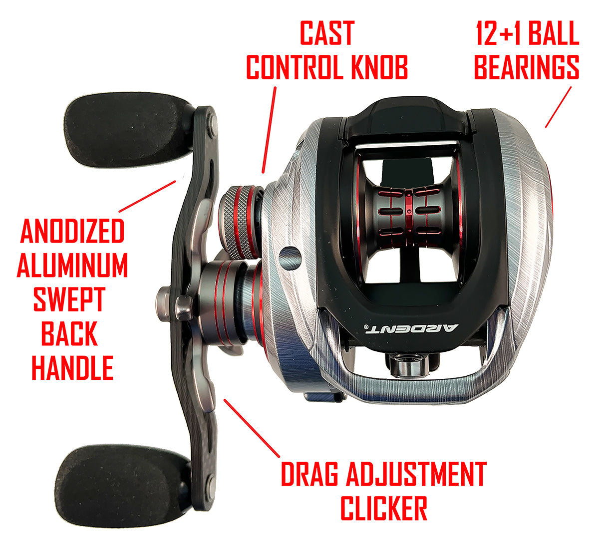 Our new flagship series of reels, the Ardent Summit Falcon Casting Reel, delivers serious hawg-stopping power in a lightweight aluminum package. Featuring an aluminum frame complemented by an eye-catching brushed aluminum look, this reel further reduces unnecessary weight by incorporating a 6061-T6 aluminum spool design and an carbon fiber swept back handle complete with grip-enhancing EVA knobs.